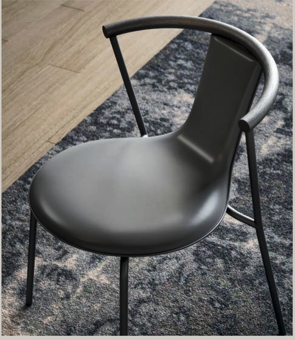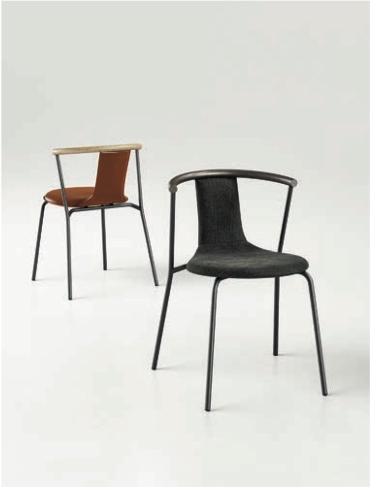 Caracterizada por su fina estructura tubular y por su respaldo de líneas curvas, que se transforma en asiento con una sola línea delicada y continua, la silla Agel diseñada por el estudio e-ggs transmite una impresión de sólida ligereza. Está disponible en versión tapizada en tejido o en cuero.