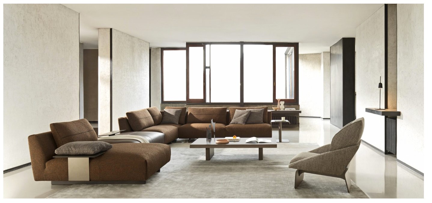 Una refinada gama modular para crear un espacio acogedor que se puede personalizar según las necesidades y deseos individuales. Está disponible en dos versiones: una versión clásica con reposabrazos fijos y una versión móvil en la que los reposabrazos se convierten en una mesa auxiliar o un cojín.