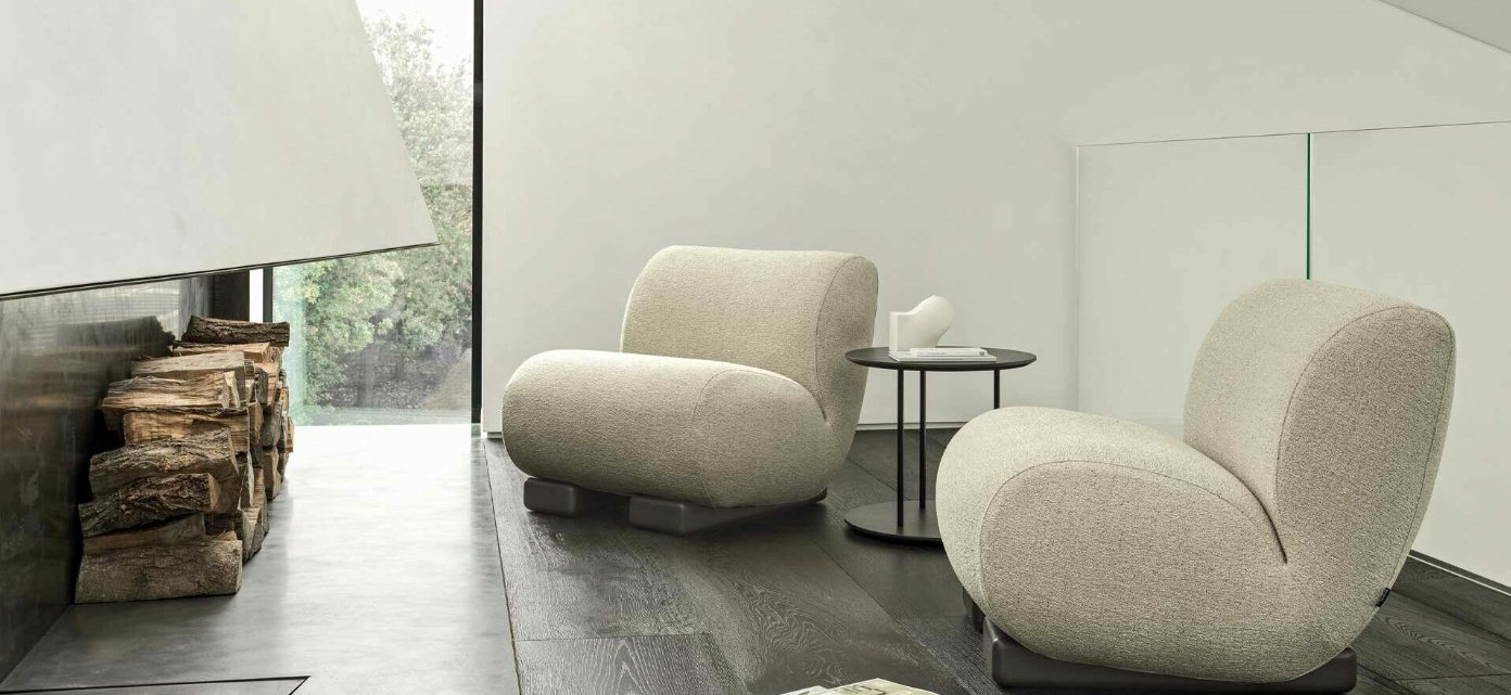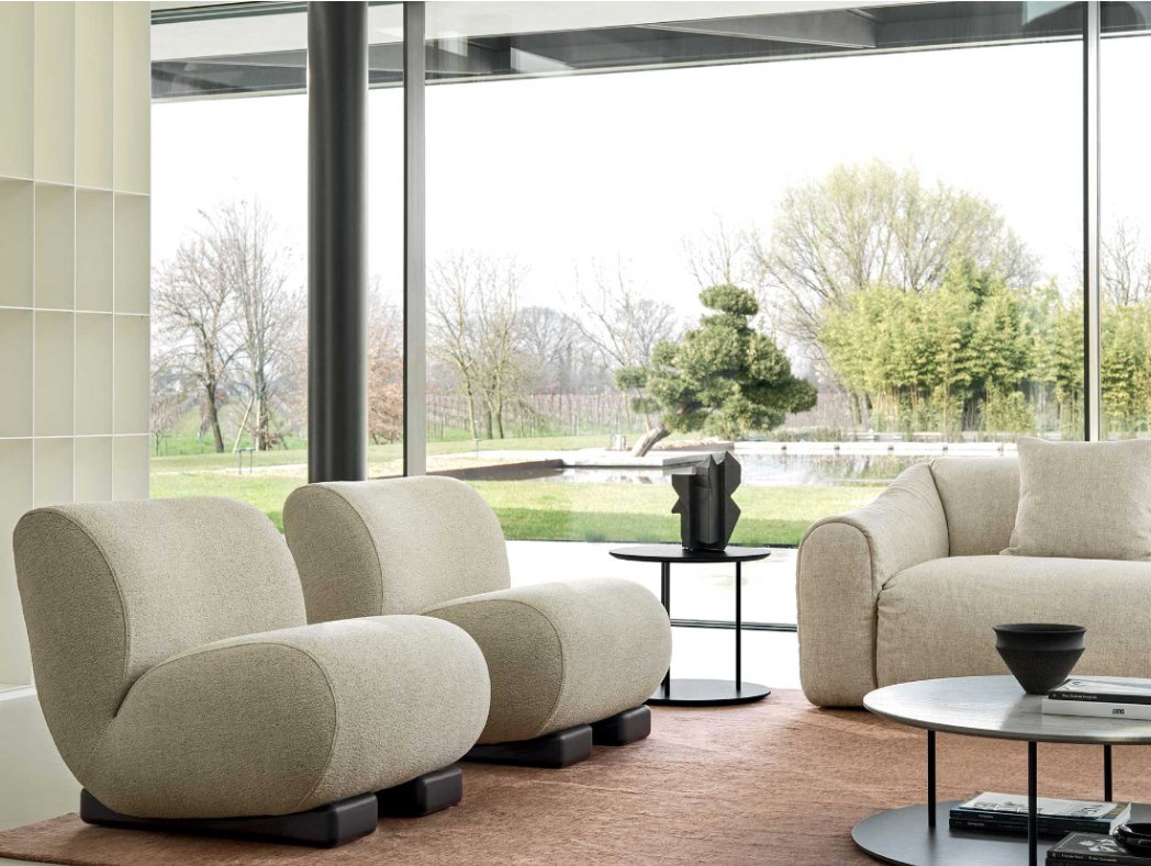Formas suaves y envolventes. Mientras que el asiento proyecta una sensación de protección y comodidad, la base, con su diseño incisivo, está lista para apoyar los momentos de relajación con autoridad y elegancia.