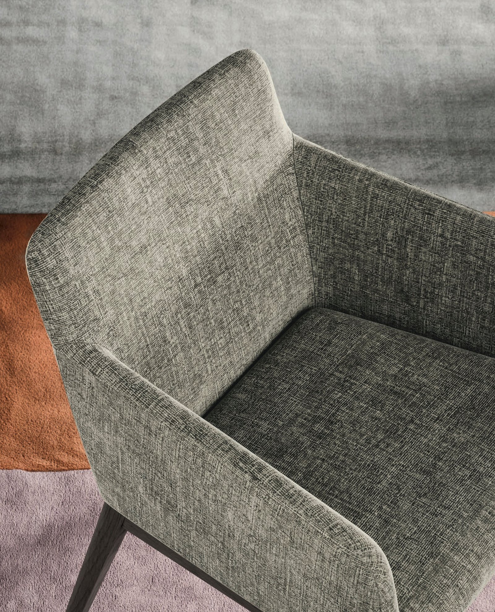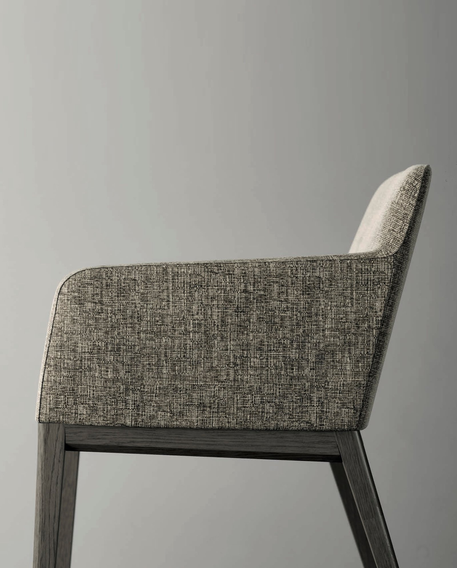 Tapizada, con cómodos brazos y patas de madera