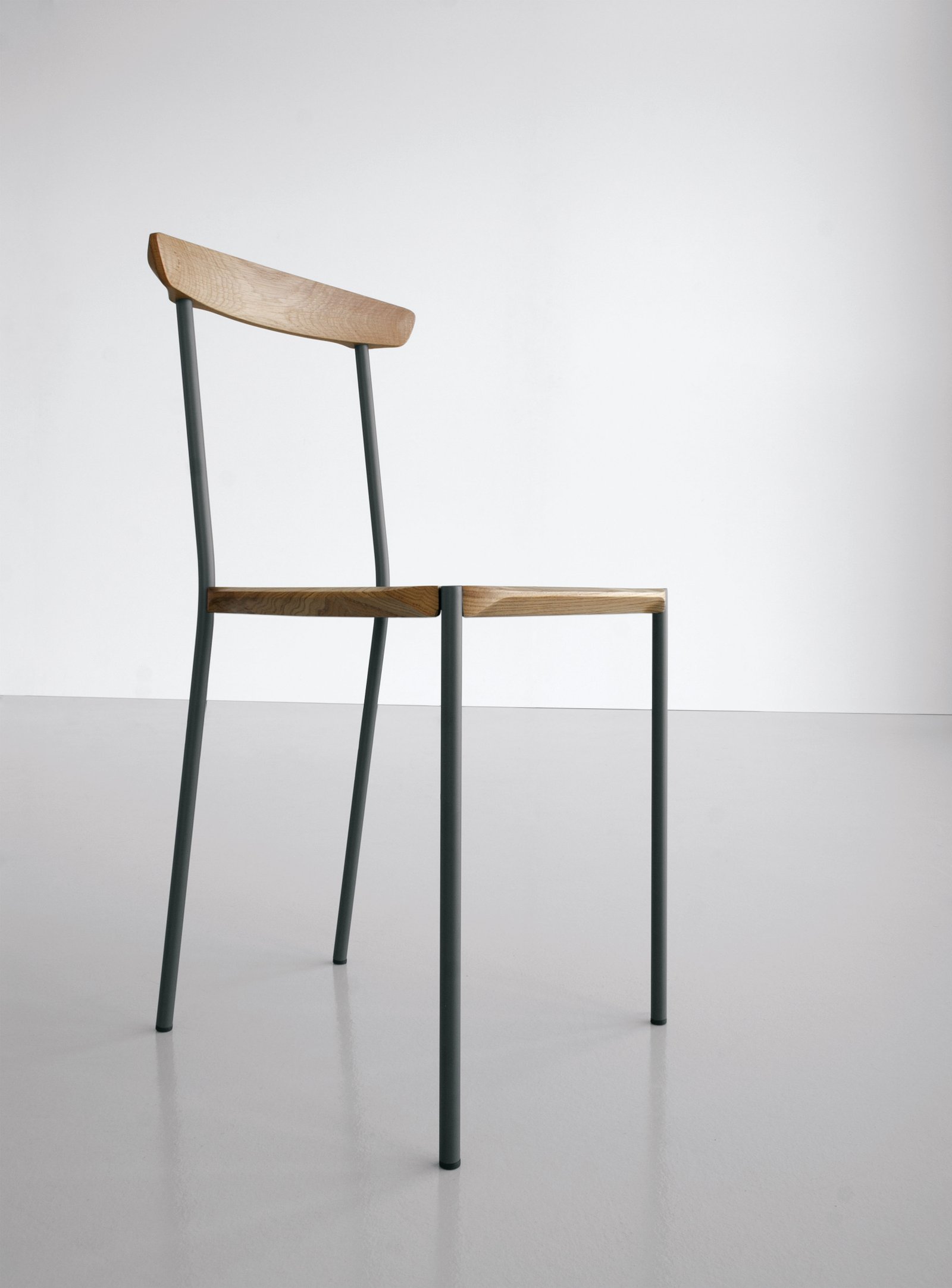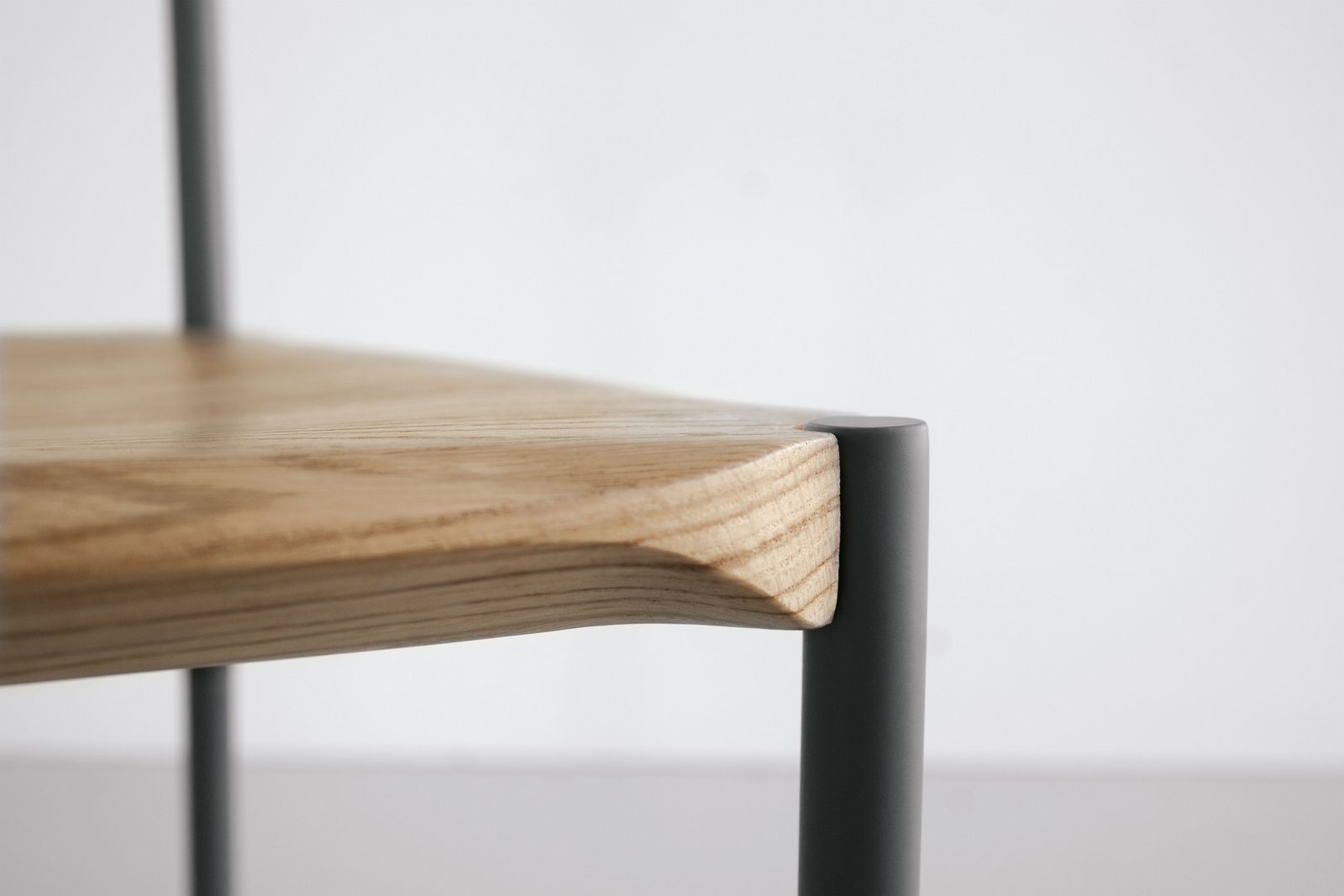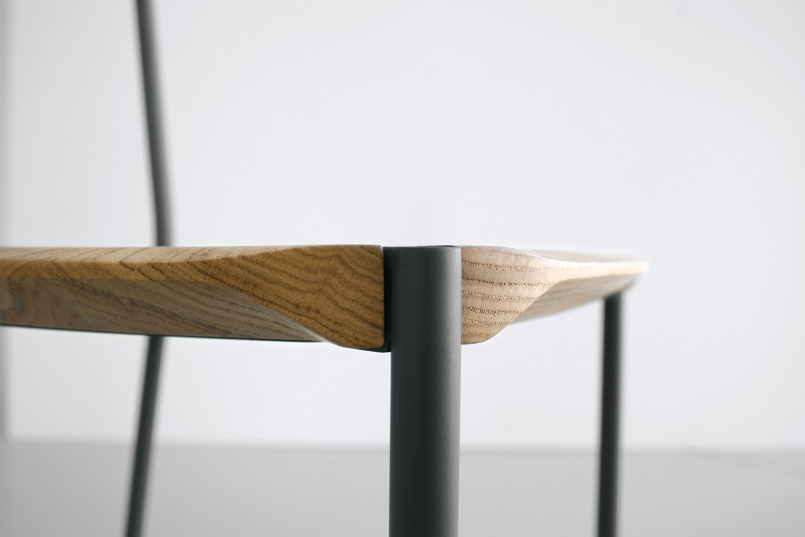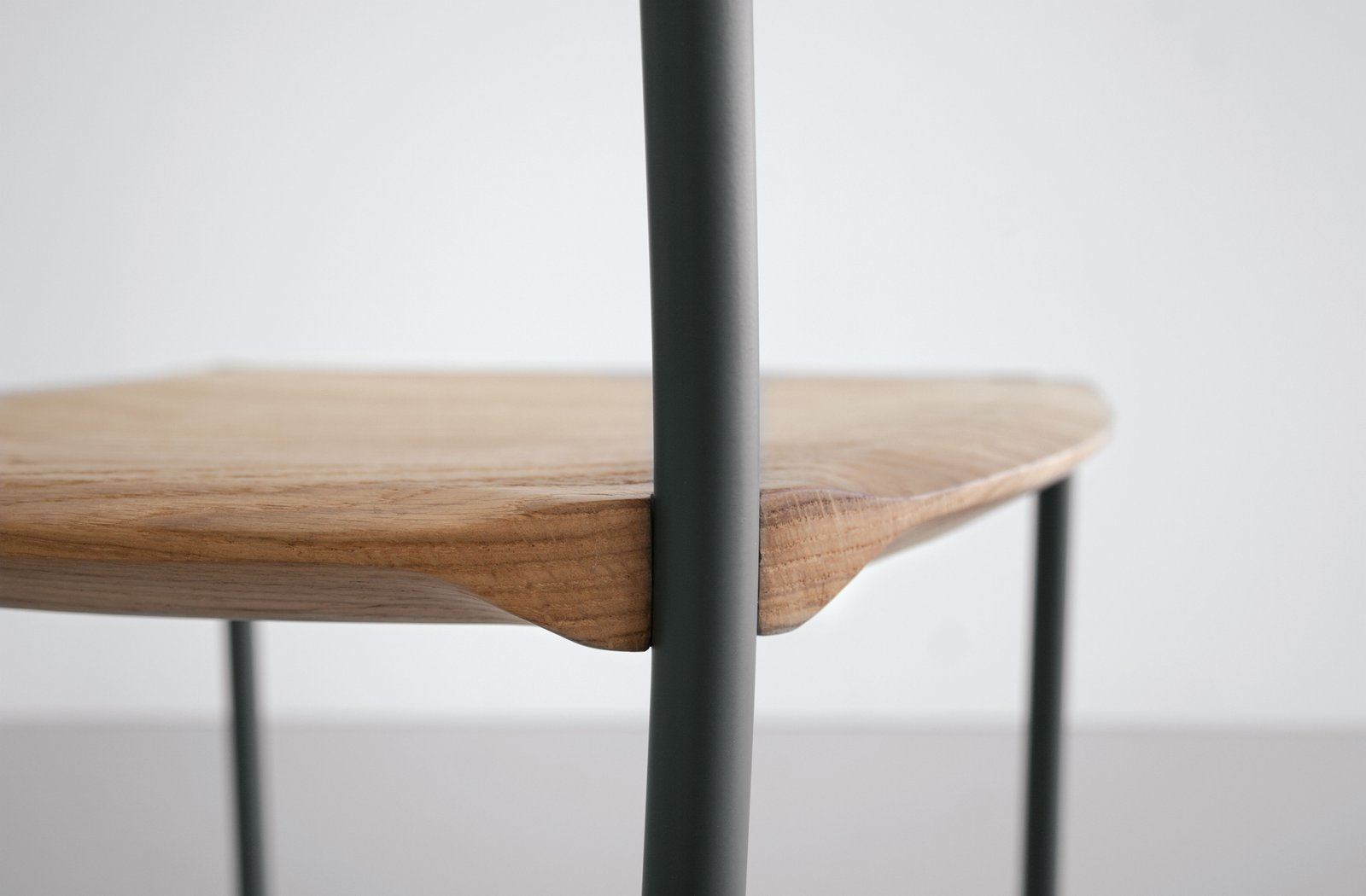 El acero y la madera se moldean para resaltar sus características estructurales y estéticas. Las geometrías tridimensionales individuales de la madera y el acero se funden en superficies únicas. Las piezas de madera maciza están protegidas con barniz mate a base de agua resistente a los arañazos, mientras que las piezas de acero están pintadas con pintura en polvo.