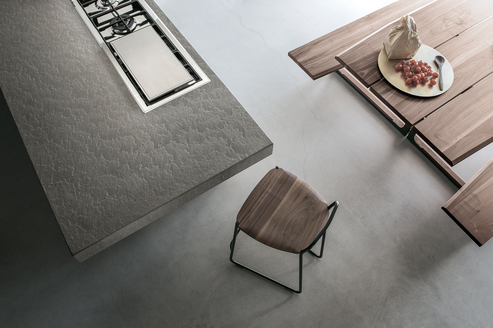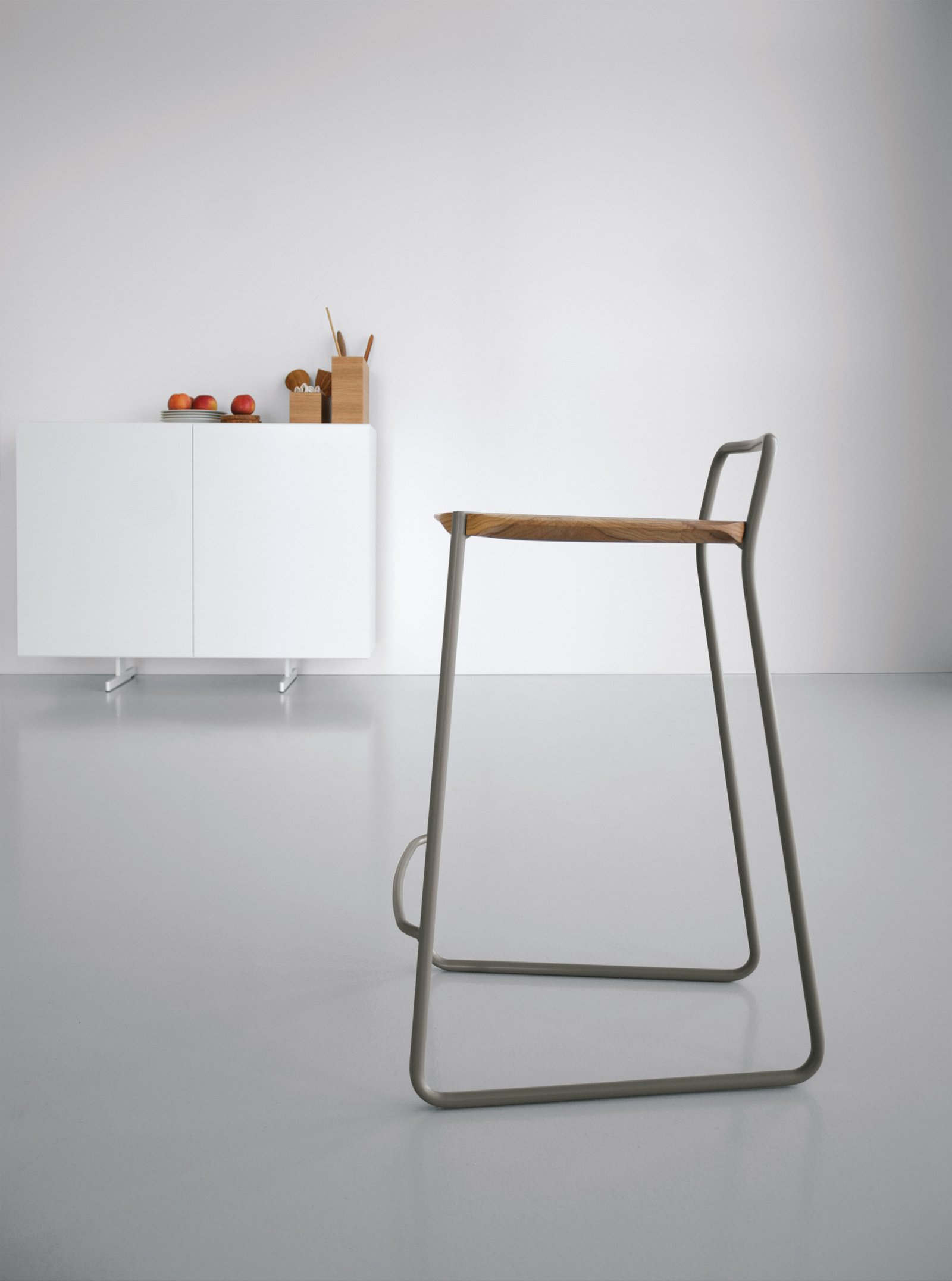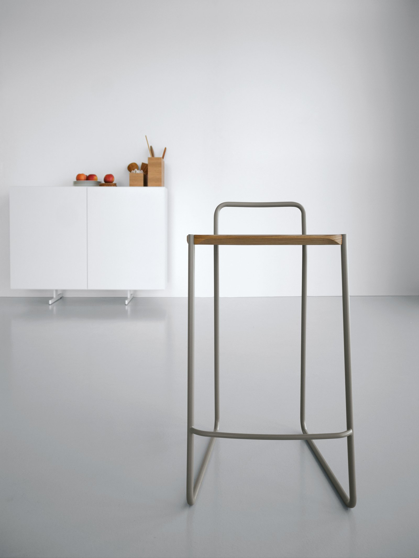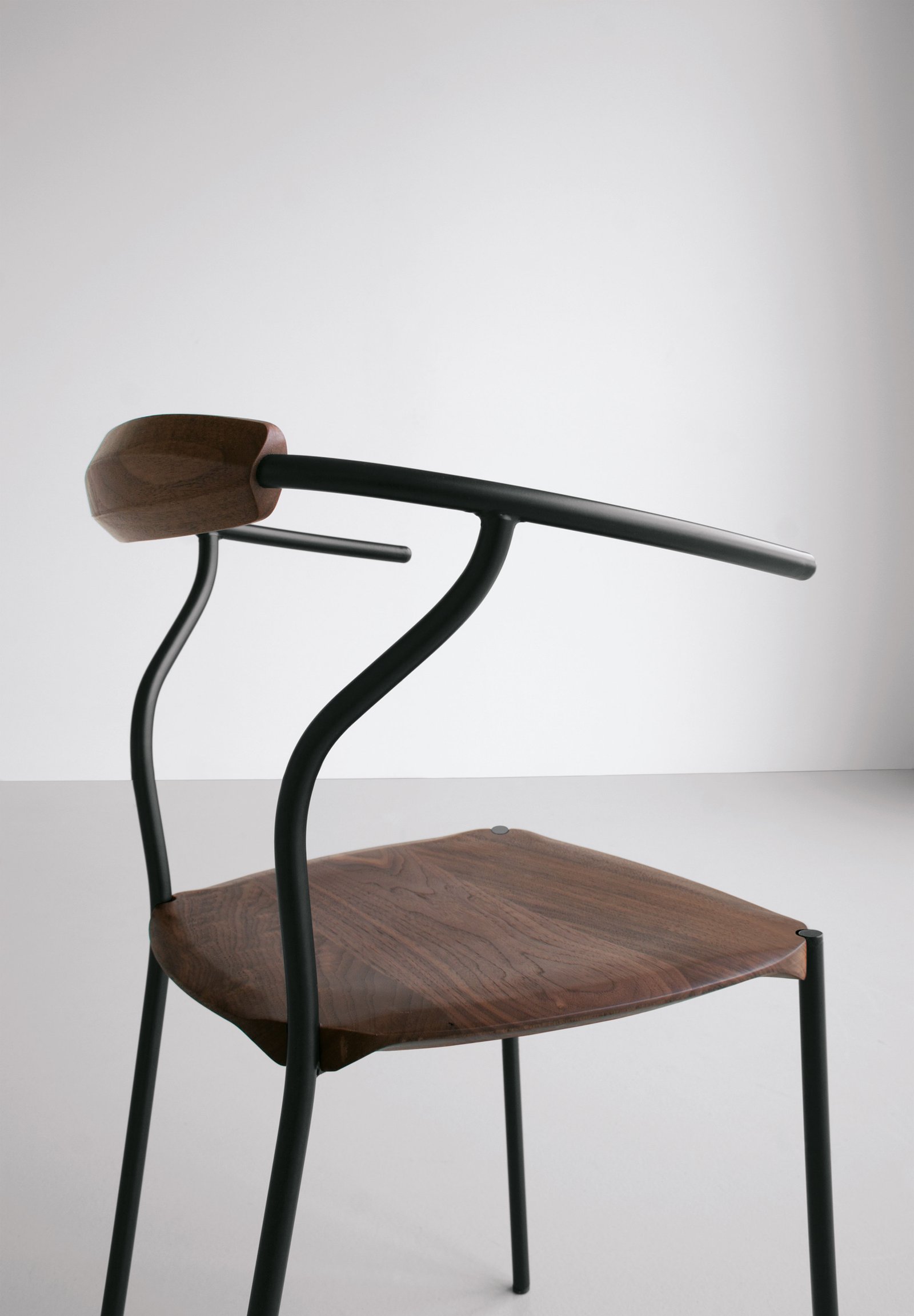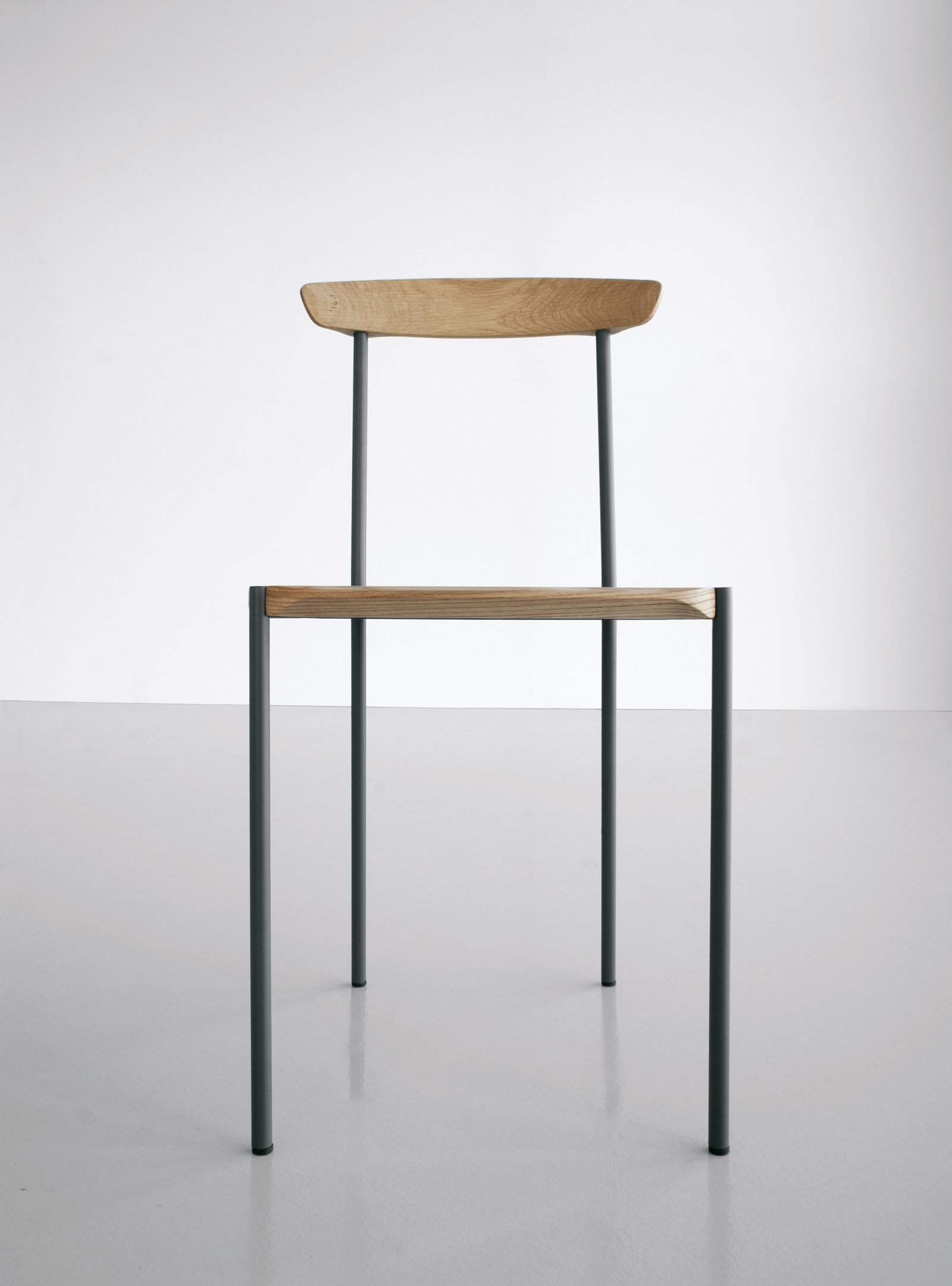 El acero y la madera se moldean para resaltar sus características estructurales y estéticas. Las geometrías tridimensionales individuales de la madera y el acero se funden en superficies únicas. Las piezas de madera maciza están protegidas con barniz mate a base de agua resistente a los arañazos, mientras que las piezas de acero están pintadas con pintura en polvo.
