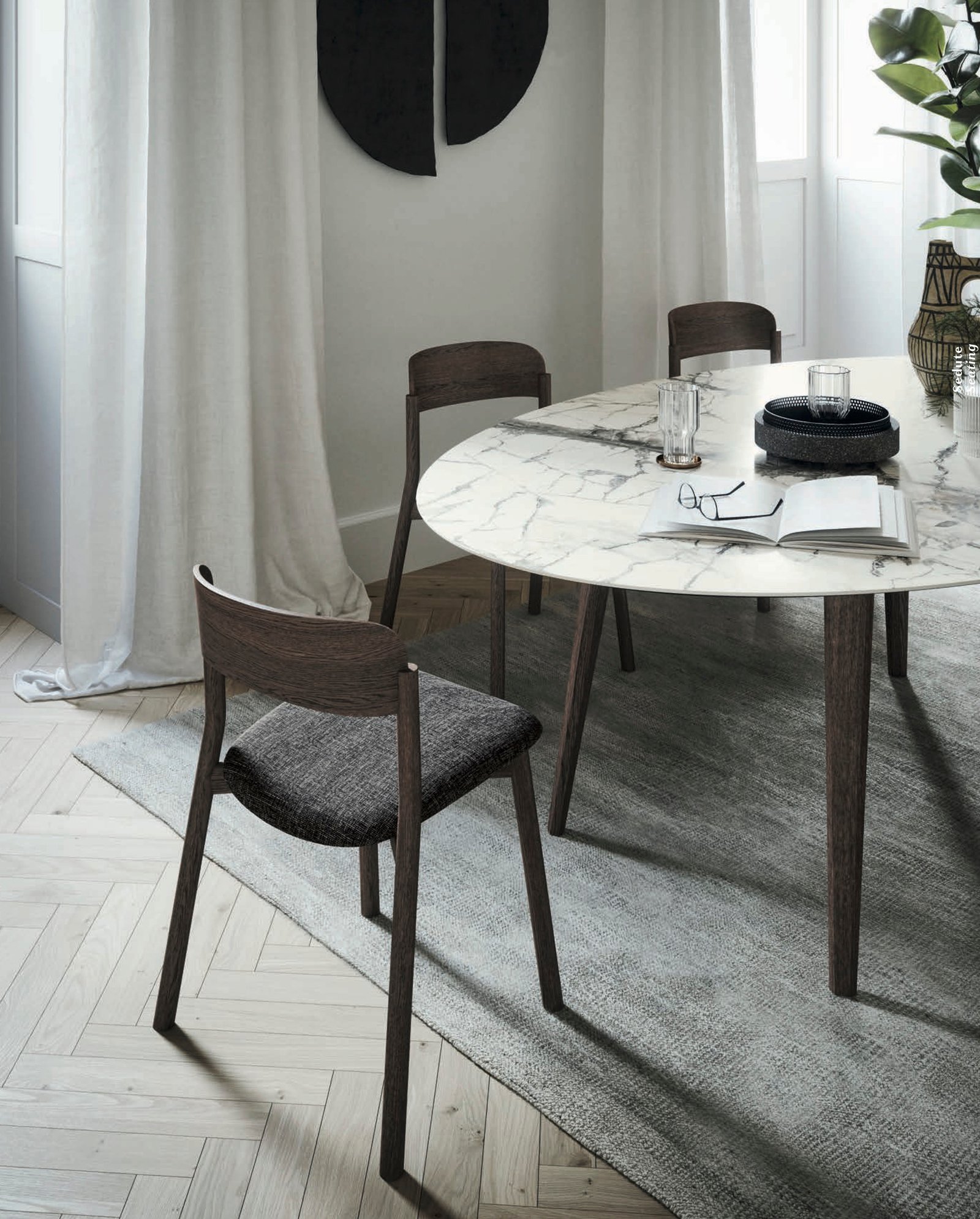 Es fácil encontrar el sitio adecuado para Ellen, diseñada por el estudio e-ggs: gracias a su estilo moderno y dinámico, se ajusta perfectamente a cualquier estilo y exigencia. La línea curva del respaldo y su acogedor asiento tapizado aseguran una experiencia confortable sin perder de vista el estilo.