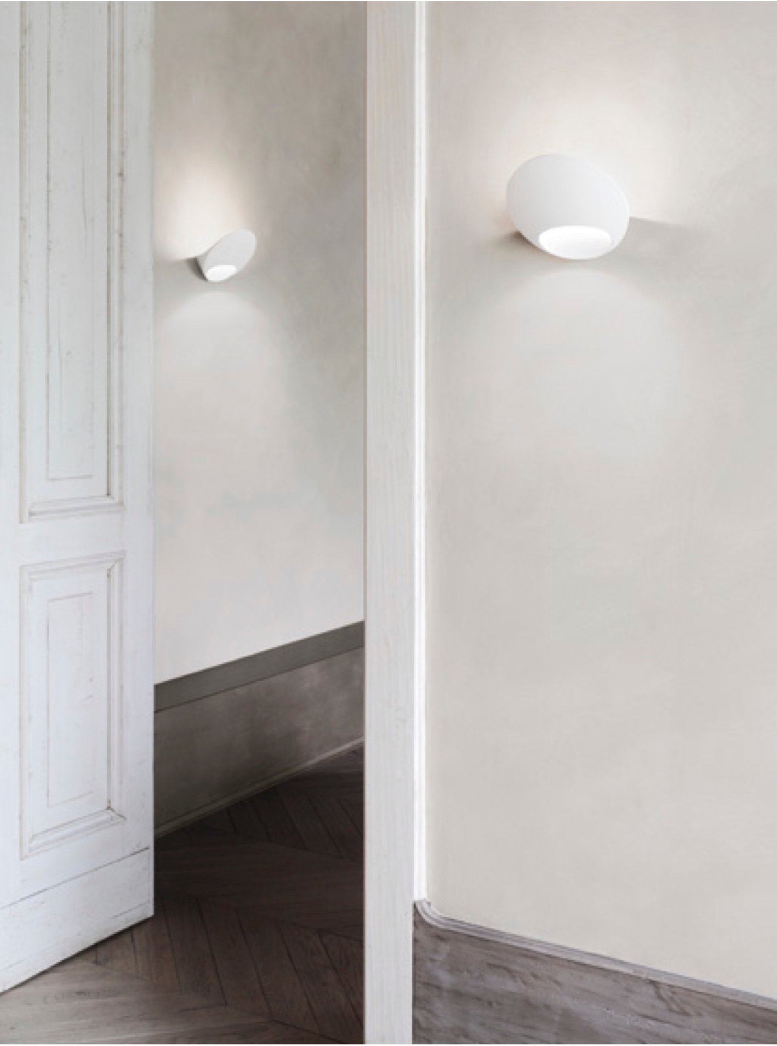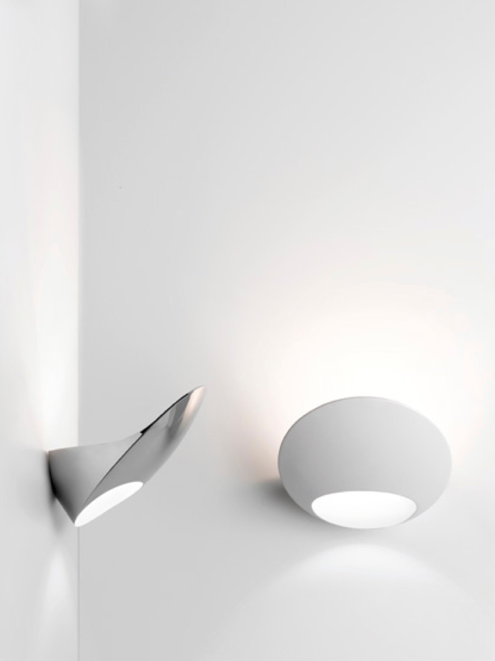 Aplique que parece tomar forma desde la propia pared, en un único volumen sólido de superficies suaves y regulares que se unen para crear bordes precisos que se convierten en llamativos signos gráficos. Cuando se enciende la lámpara, la luz del LED rebota en la pared, creando un contraste vivo, y luego se desliza dentro de la abertura, iluminándola y formando delicadamente un arco en la pared.