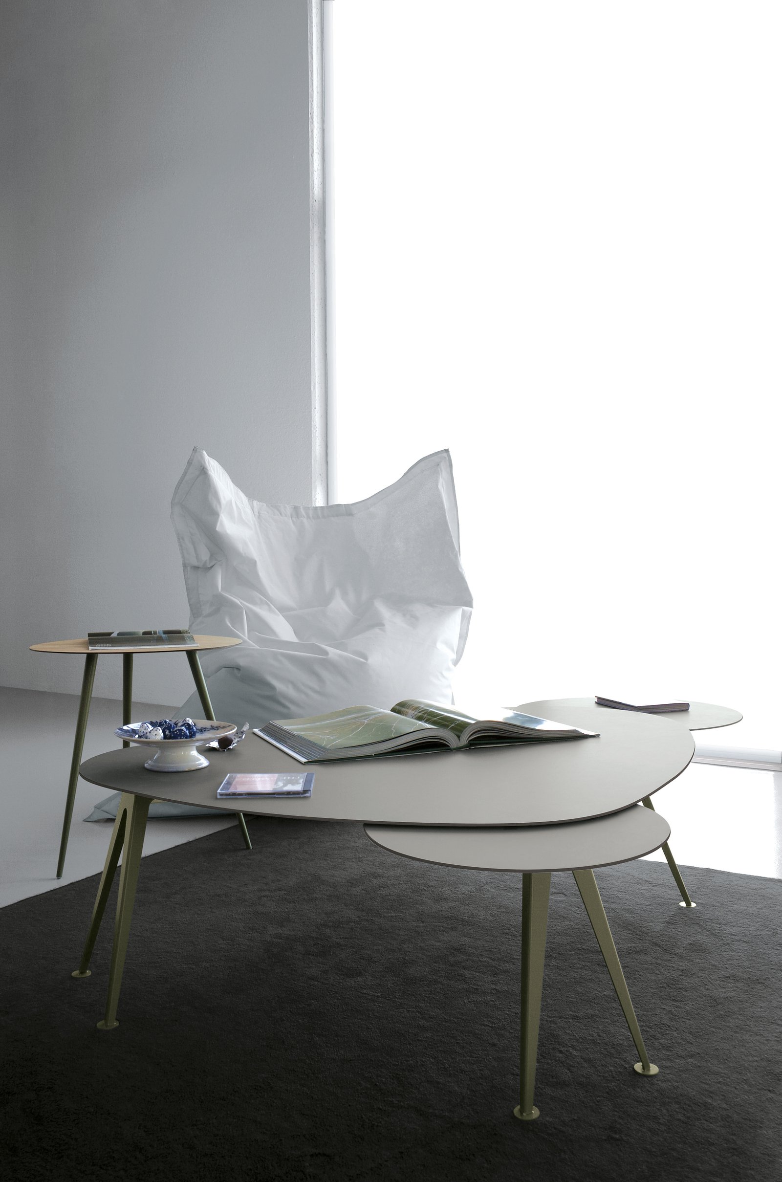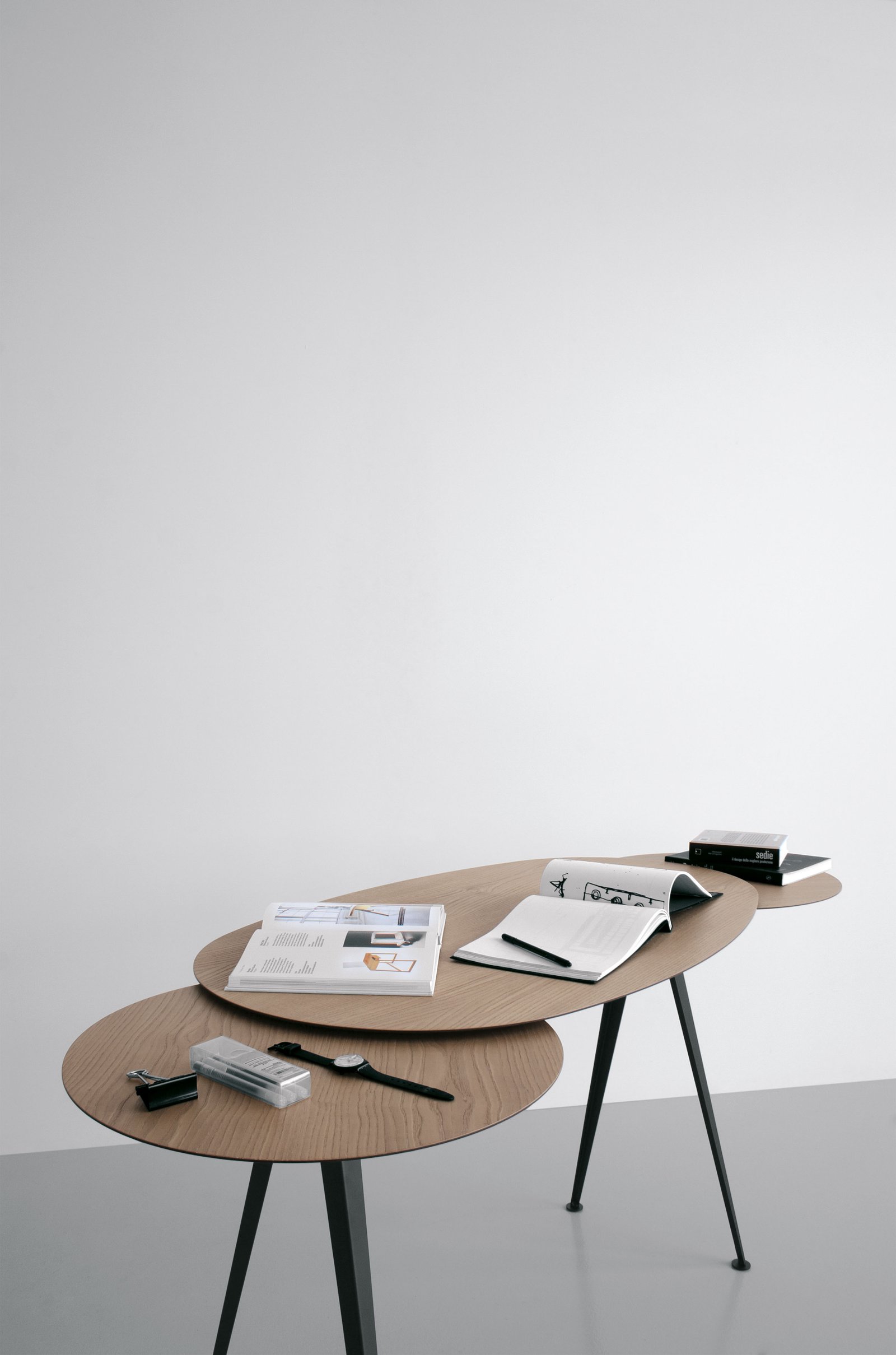 Es una colección de mesas que ocultan en su parte inferior uno o varios discos con un diámetro de 48-54 cm. Los discos se pueden extraer girándolos, lo que aumenta la superficie disponible de la mesa.