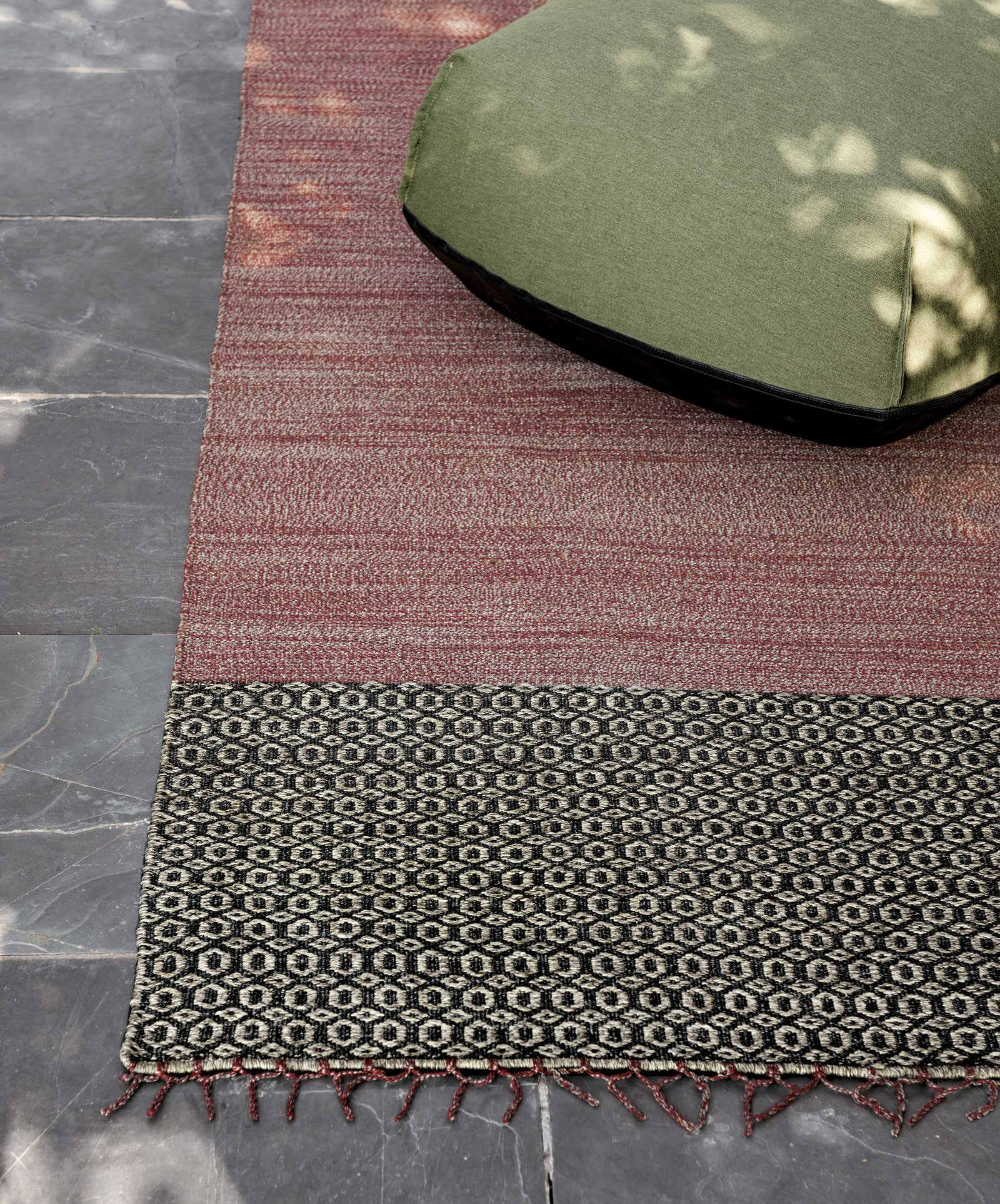 Creada para satisfacer las necesidades de los espacios exteriores. Se tejen en telares manuales: su delicada artesanía y su calidad a medida hacen que cada una de ellas sea única. Fabricadas con hilo de fibra de polipropileno, las alfombras Mustache están disponibles en tres diseños en dos o más colores y en dos tamaños estándar, o se pueden personalizar bajo pedido. Son muy resistentes, incluso cuando se exponen a la luz solar o a la humedad.