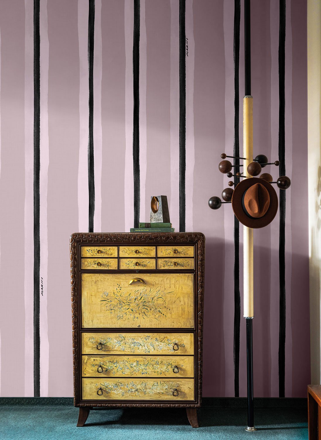 Una estética libre, atrevida y vibrante. La colección Marni reimagina los revestimientos murales como un gesto creativo: patrones orgánicos, geometrías abstractas y paletas de colores vibrantes se entrelazan en un diálogo entre el arte, la moda y el diseño de interiores.