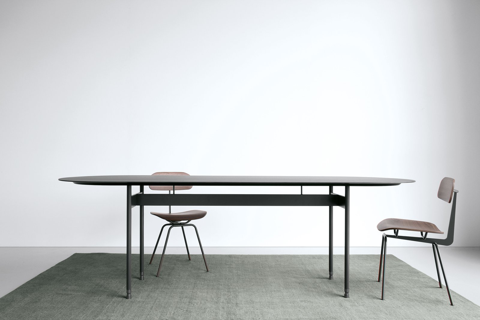 Gracias a la tecnología de plegado tridimensional de los perfiles, ha sido posible crear un sistema de mesas que ofrece múltiples grados de libertad. El bastidor, ligero pero resistente, soporta mesas de 160 a 300 cm de longitud, además de admitir 5 tipos de geometrías de tablero y permitir su reducción a medida.