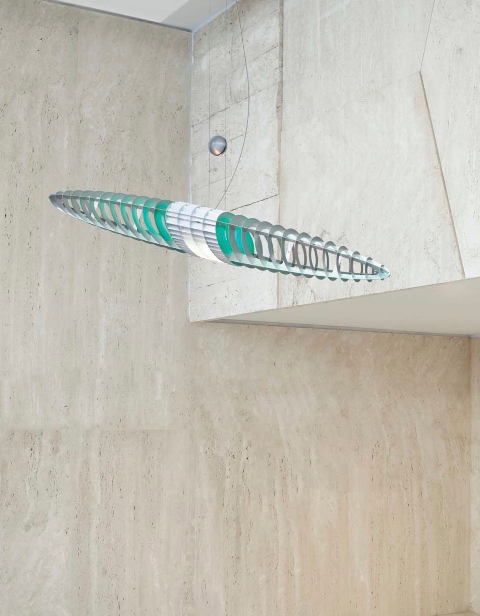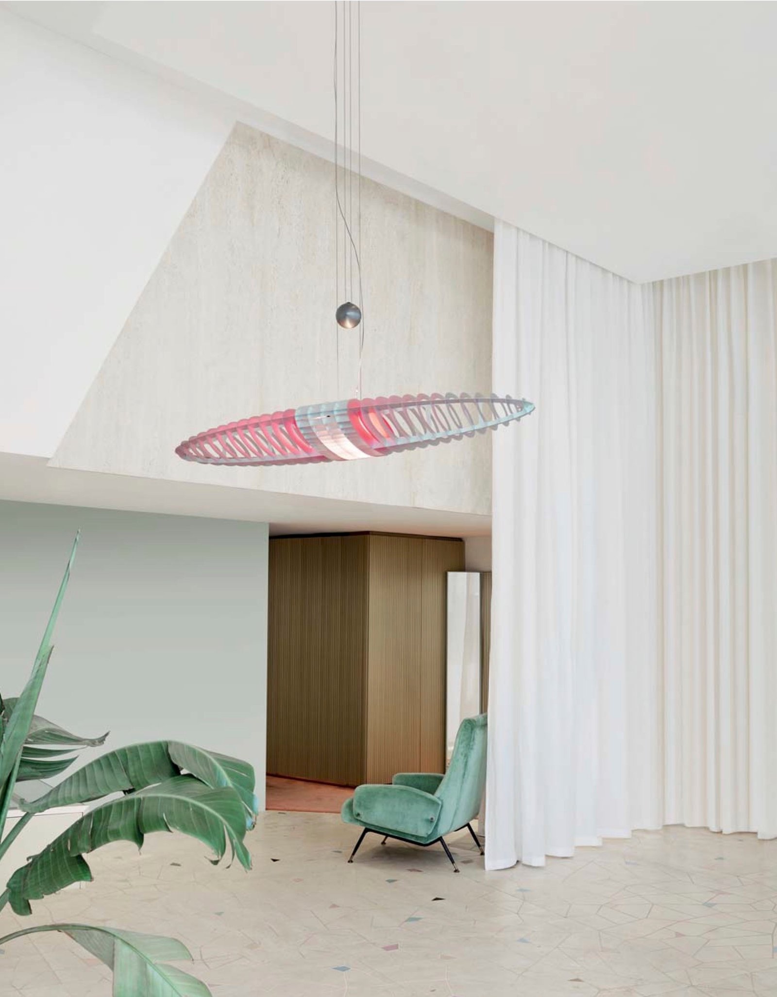 La luz, el color y la forma se unen en una lámpara de suspensión que va más allá de la dicotomía habitual entre pantalla y difusor.