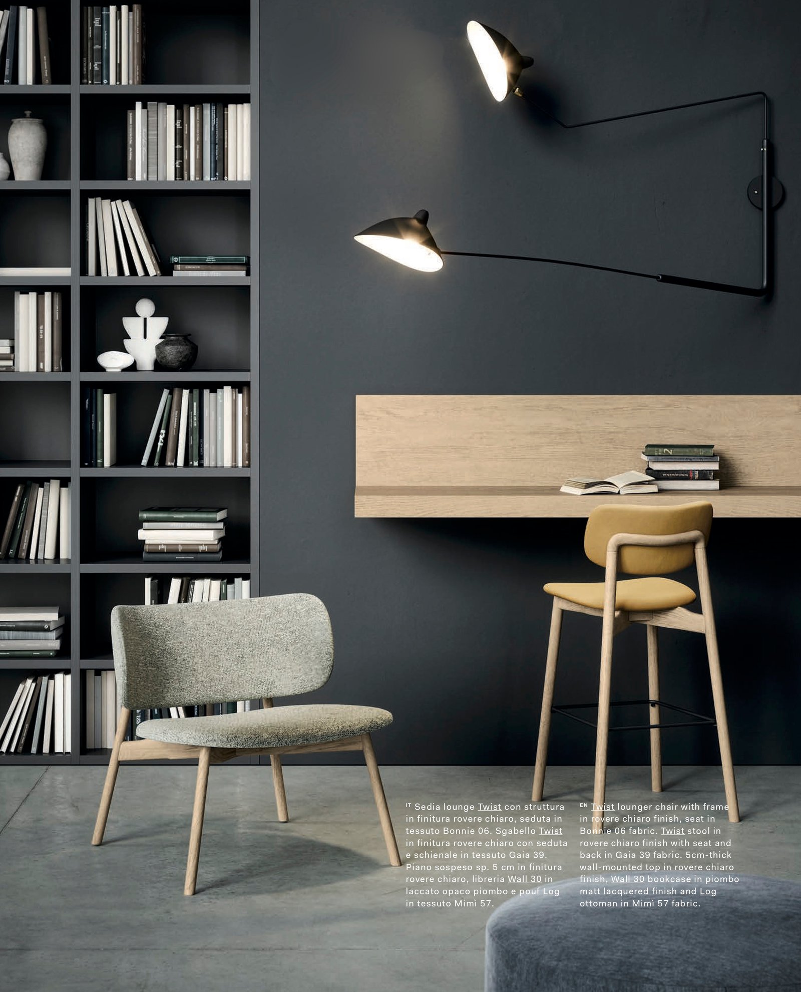 Gracias a la inclinación especial de las patas traseras, que se extienden y se unen para sostener el respaldo, la silla Twist de Matteo Zorzenon reinterpreta las formas de los años sesenta con un diseño elegante y dinámico. Acogedora y confortable, la estructura se completa con un asiento y un respaldo tapizados. También disponible en versión taburete y sillón.