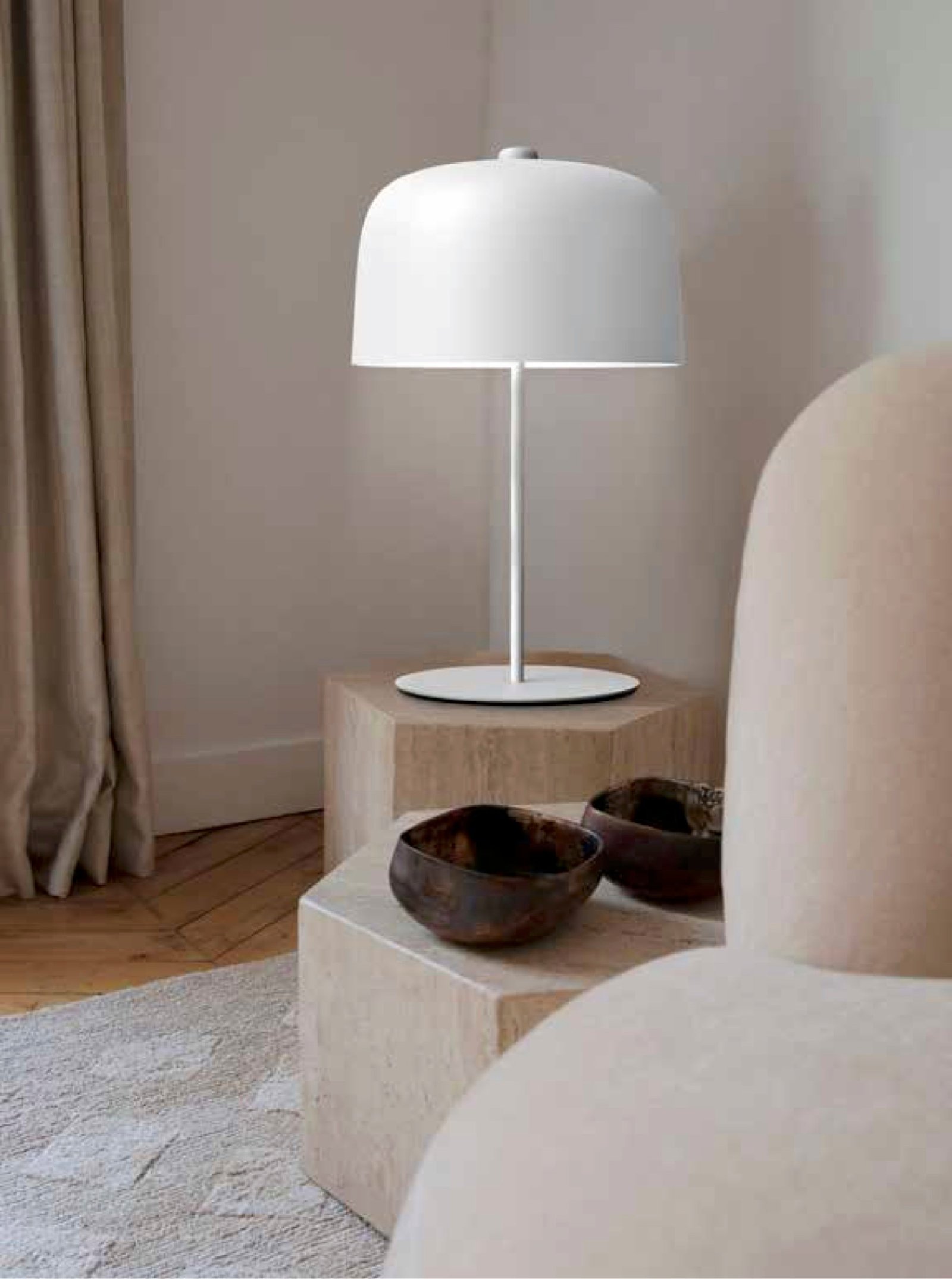 Zile es, a todos los efectos, una lámpara ecológica, disponible en versiones de pie, de mesa y suspendida. La pantalla está fabricada en bioplástico duradero (PLA), un material que se utiliza habitualmente en el mundo del embalaje como material compostable y que procede en un 80 % de fuentes renovables. Los procesos de fabricación tienen un bajo impacto medioambiental y casi todos los materiales utilizados en la producción de las lámparas son reciclables y/o reciclados.